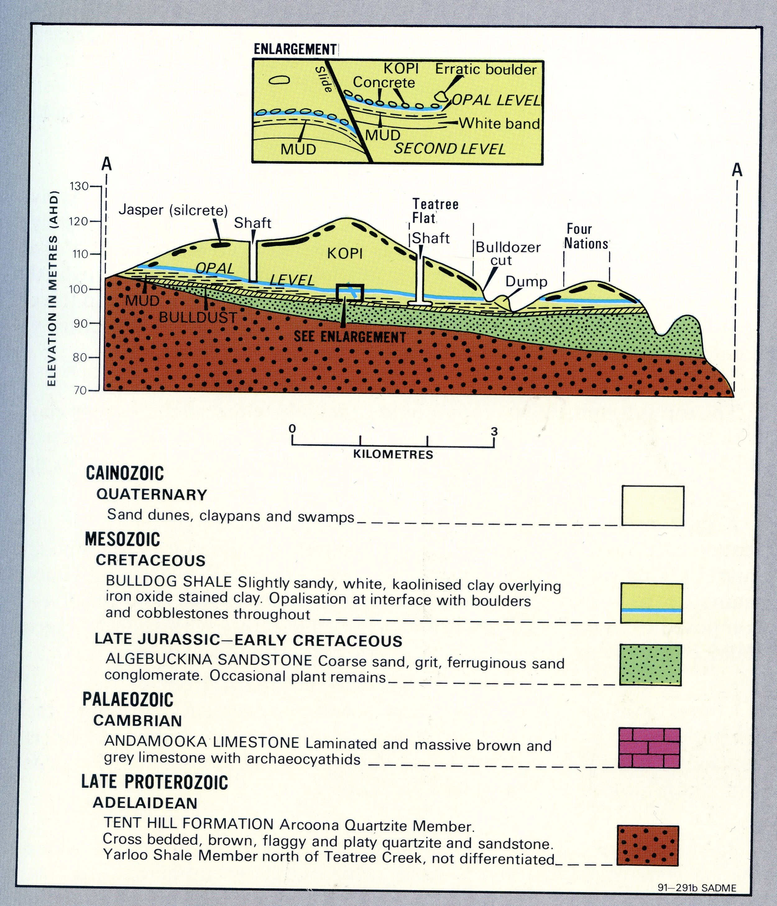 Geological stratigraphy and key for the Andamooka precious stones field.