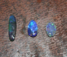 This is the most common form of opal treatment and is usually applied to Andamooka matrix opal. The process is fairly simple. The matrix opal is cut and polished to shape and then “cooked” in a saturated sugar solution. After a period of time the opal is removed and immersed into a concentrated sulphuric acid solution. The reaction of the acid and sugar places carbon as black spots into the porous surface layer of the matrix opal turning it black and hence imitation black opal.
